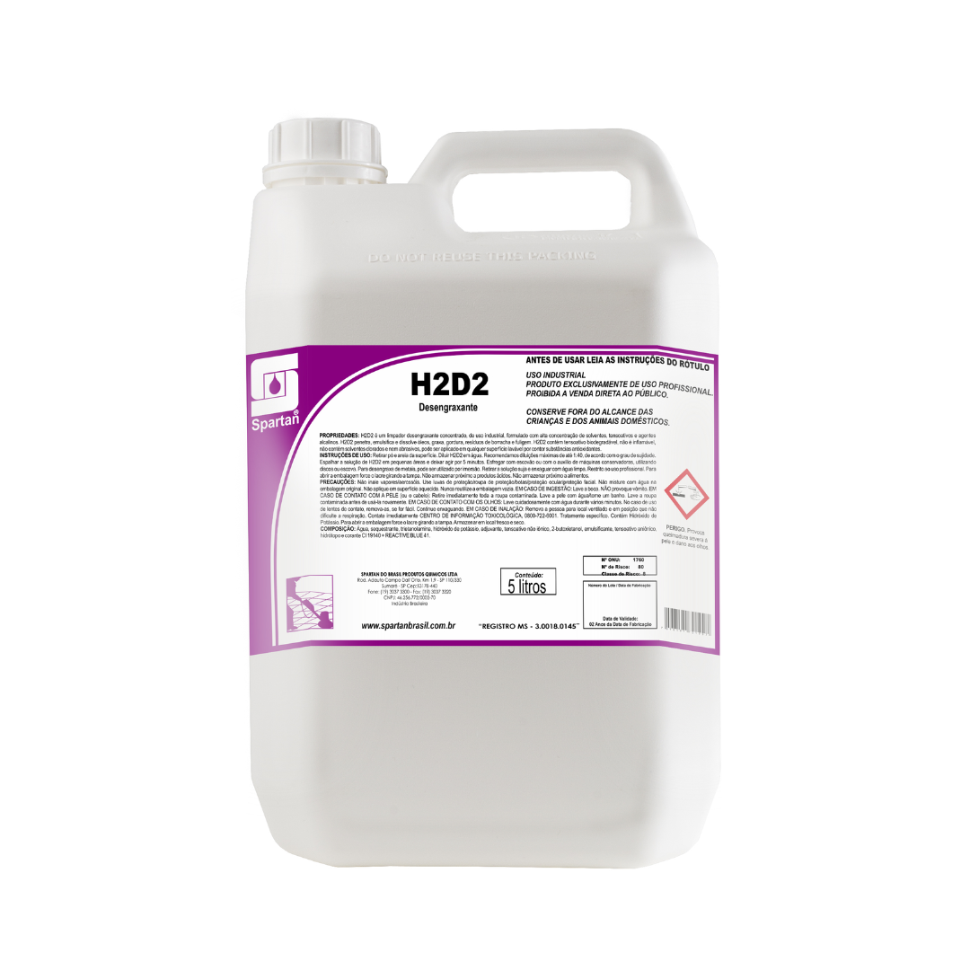 H2D2 é um desengraxante concentrado de alta performance, formulado para remover com eficiência óleo, graxa, gordura, resíduos de borracha e fuligem. Indicado para aplicações industriais, oficinas, transportadoras e manutenção em geral, proporciona limpeza profunda e rápida, garantindo superfícies livres de sujidades pesadas.