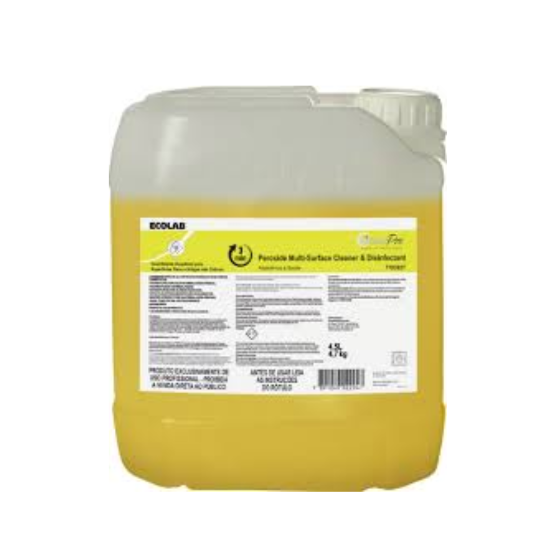 Peroxide Multi Surface Cleaner and Disinfectant é um desinfetante registrado na Anvisa, formulado à base de peróxido de hidrogênio com amplo espectro de ação. É efetivo contra Norovírus, Coronavírus SARS, Influenza H1N1, Staphylococcus aureus, Listeria monocytogenes e Klebsiella pneumoniae (KPC). Indicado para limpeza e desinfecção de artigos não críticos, vidros, macas, mesas, bancadas, utensílios metálicos, janelas, pisos e diversas superfícies. Possui rápido tempo de ação, alto rendimento e não necessita do uso de EPI (Equipamentos de Proteção Individual).